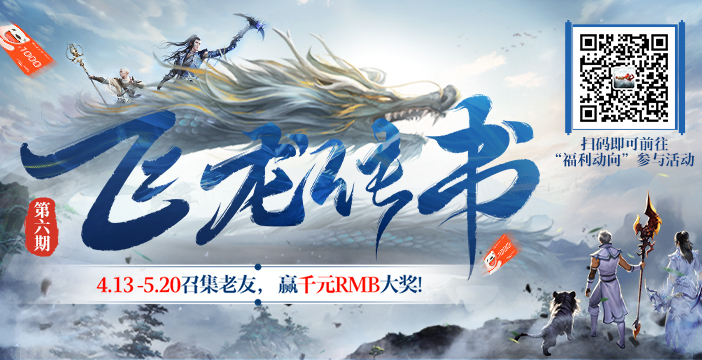 4月13日10时至5月20日24时,可扫描下方二维码,前往“新天龙八部公众号-福利动向”参与飞龙传书活动,召回老友,领取伴君令和抽奖券,抽取千元京东卡、百元京东卡、小狐仙玩偶等实物奖励。更有机会抽取到永久时装:天天向上·文曲、3级秘银*3、3级棉布*3等精彩好礼!