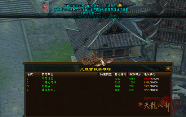 凤凰邀请赛不仅仅在于帮会的实力,还在于团队的协作能力,指挥的高瞻远瞩,抢水晶据点拿旗子夺分等等……