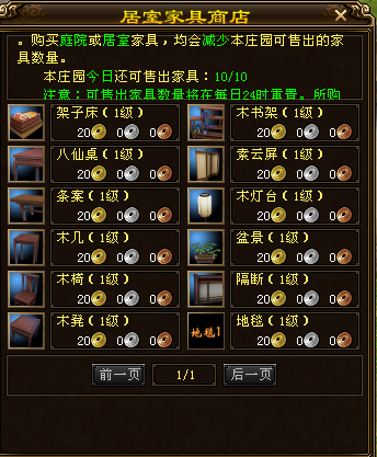 居室家具和庭院家具的购买数量合计每天不超过10次(更高级别的购买数量会不会更改后续更新)