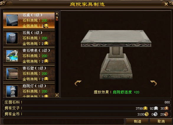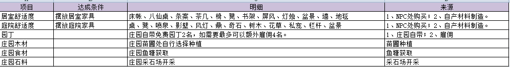 关1键1词:居室舒适度、庭院舒适度、空闲园丁;庄园木材、庄园石材、庄园石料。
