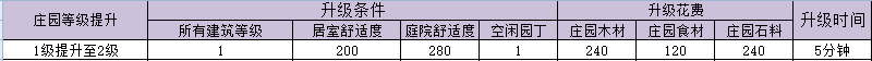 (因为时间周期较长,2级提升至3级、4级、5级升级所需花费后续补充)