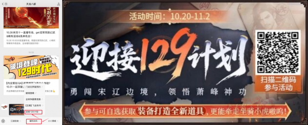 游戏内扫码进入官方公众号,打开对话框,点下方【福利动向】,找到“迎接129计划”,