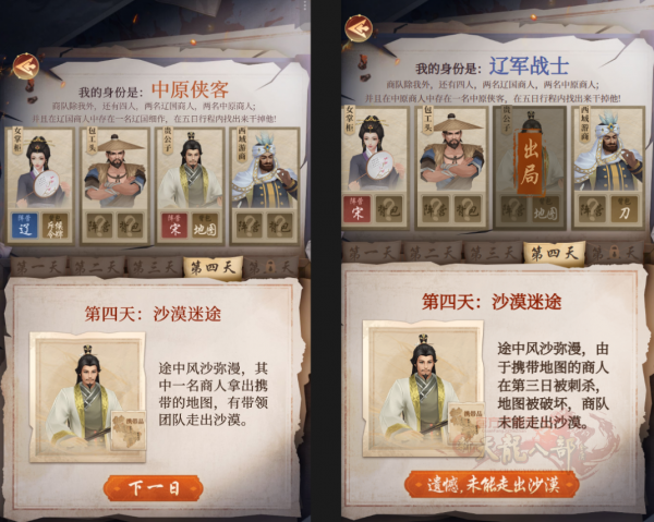 ③抽完身份点“混入商队”,就正式开启5天闯关。