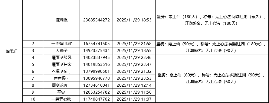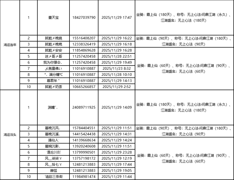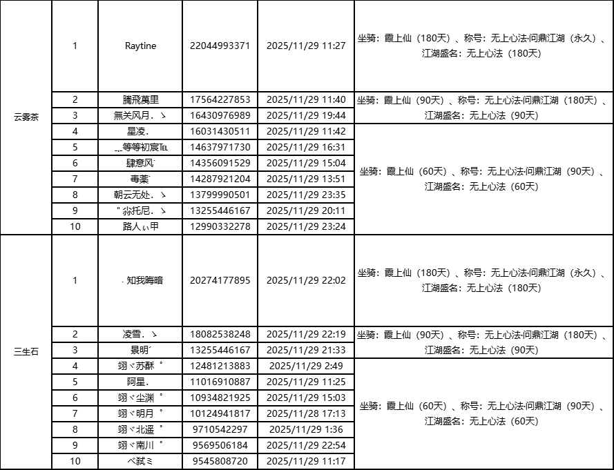 活动奖励已发放至对应角色,届时请注意查收,请于2026年1月4日前,去往大理(172,122)龚彩云处领取奖励!
