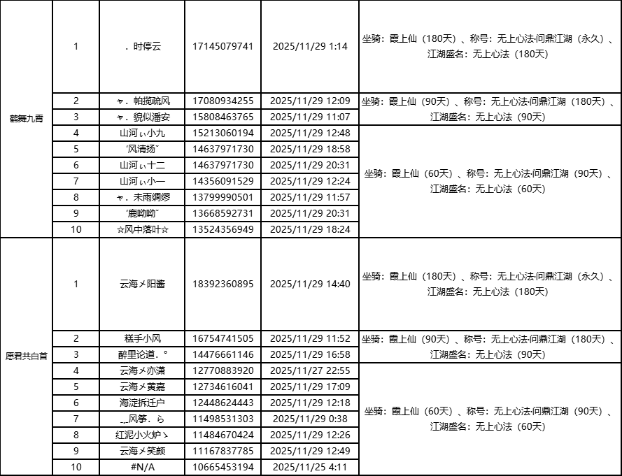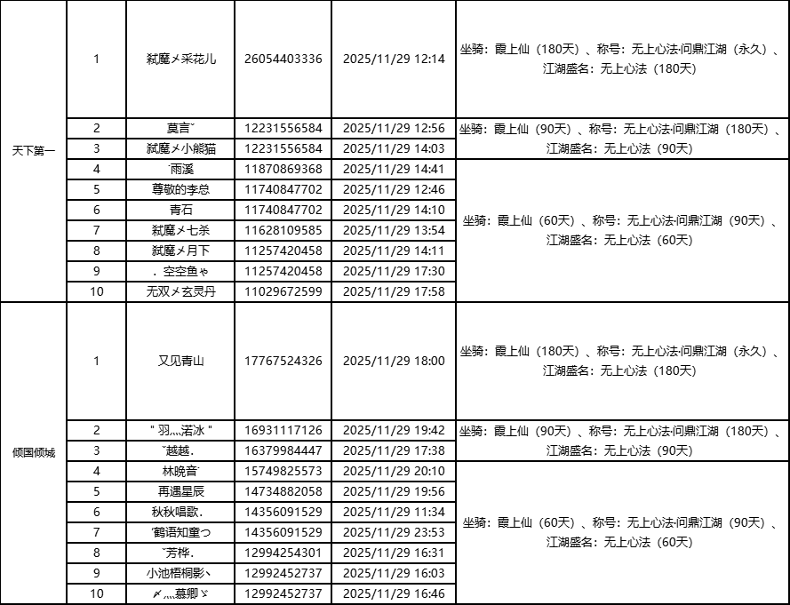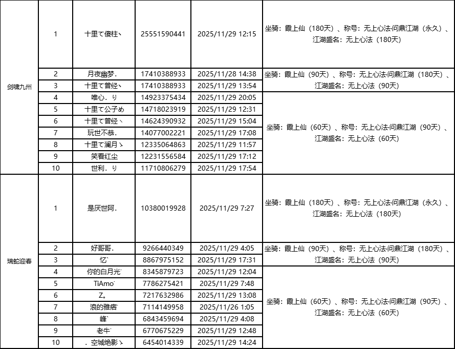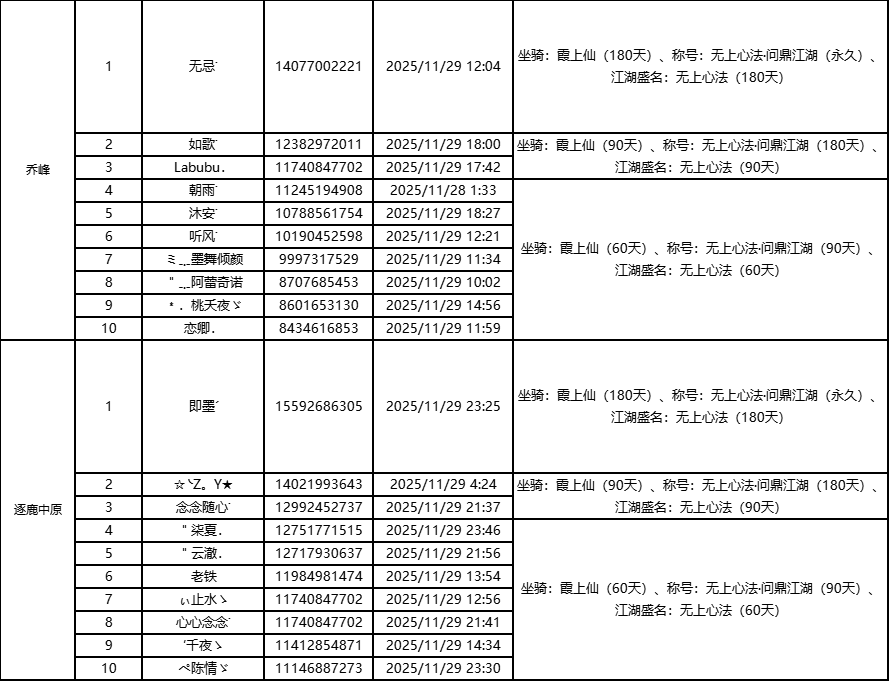截至11月29日24点,“破镜登峰榜”活动圆满结束,恭喜所有获奖玩家!