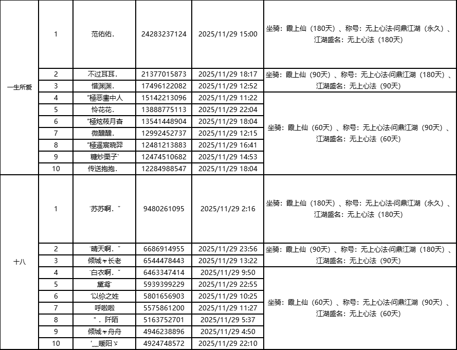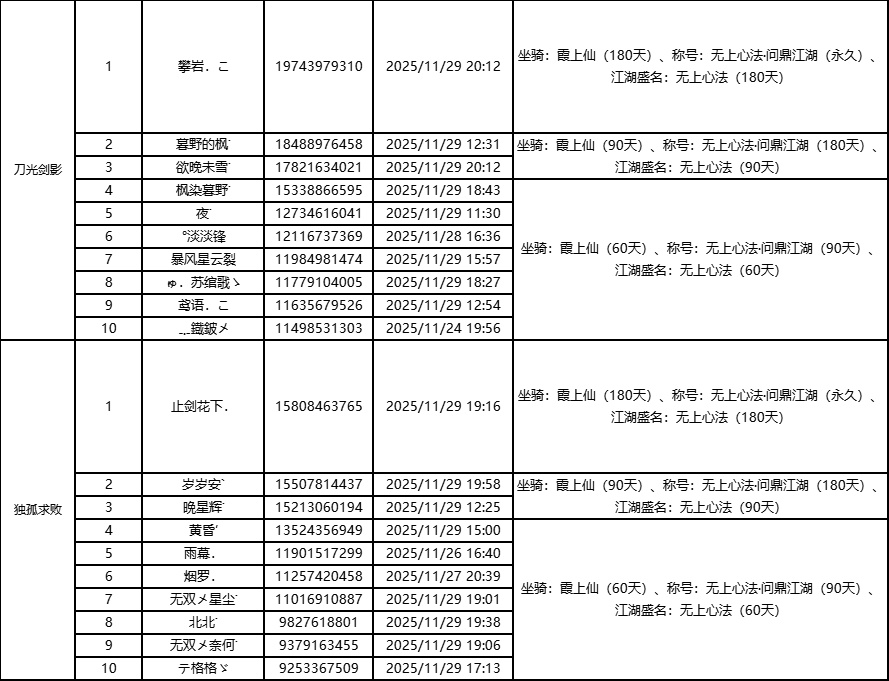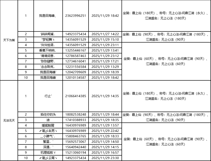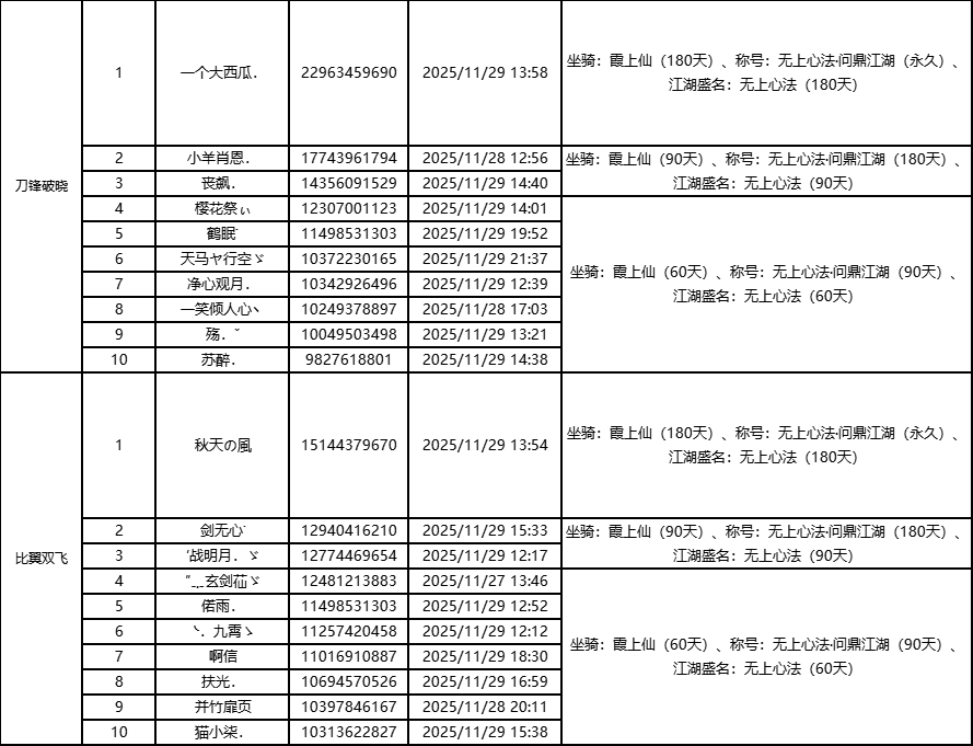 标题: “破镜登峰榜-单服心法榜”获奖公告