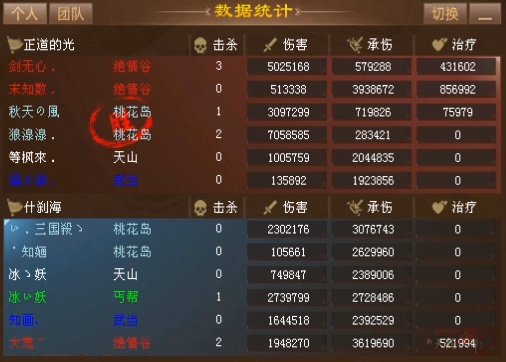 不过【正道的光】的绝情谷仍未放弃反击,火力始终紧追【什刹海】的桃花岛,最终凭借持续输出完成击杀。