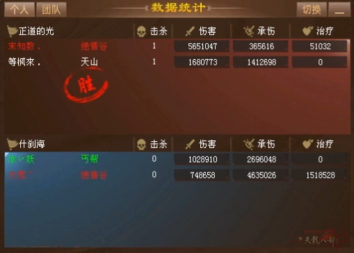 之后【什刹海】的丐帮先被打出重楼,在【正道的光】的输出下应声倒地,【正道的光】拿下首杀;