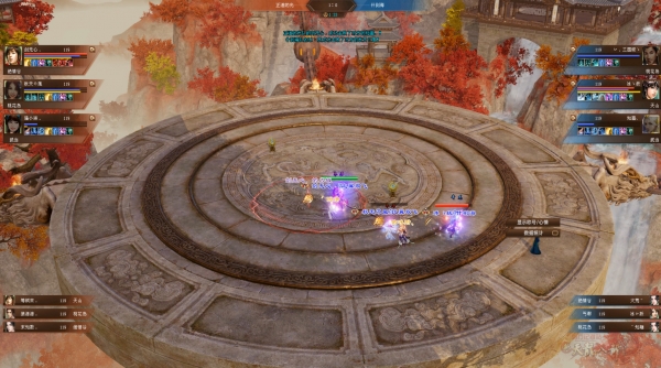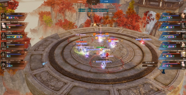 开战瞬间,【正道的光】迅速确立目标,全队火力直指【什刹海】的桃花岛,一顿输出后将其消耗到丝血眼,看就要倒地出局。