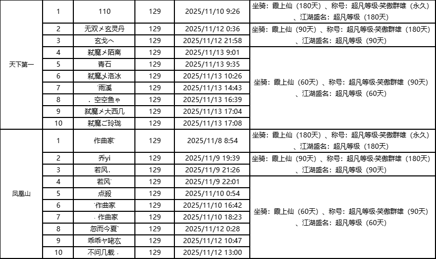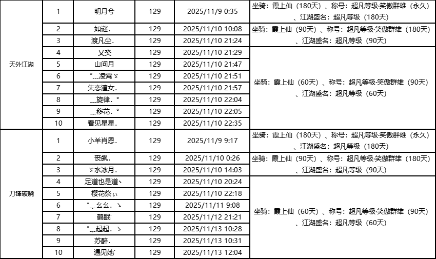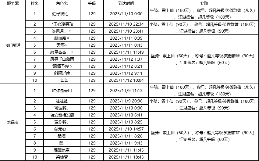 标题: “破镜登峰榜-单服等级榜”获奖公告