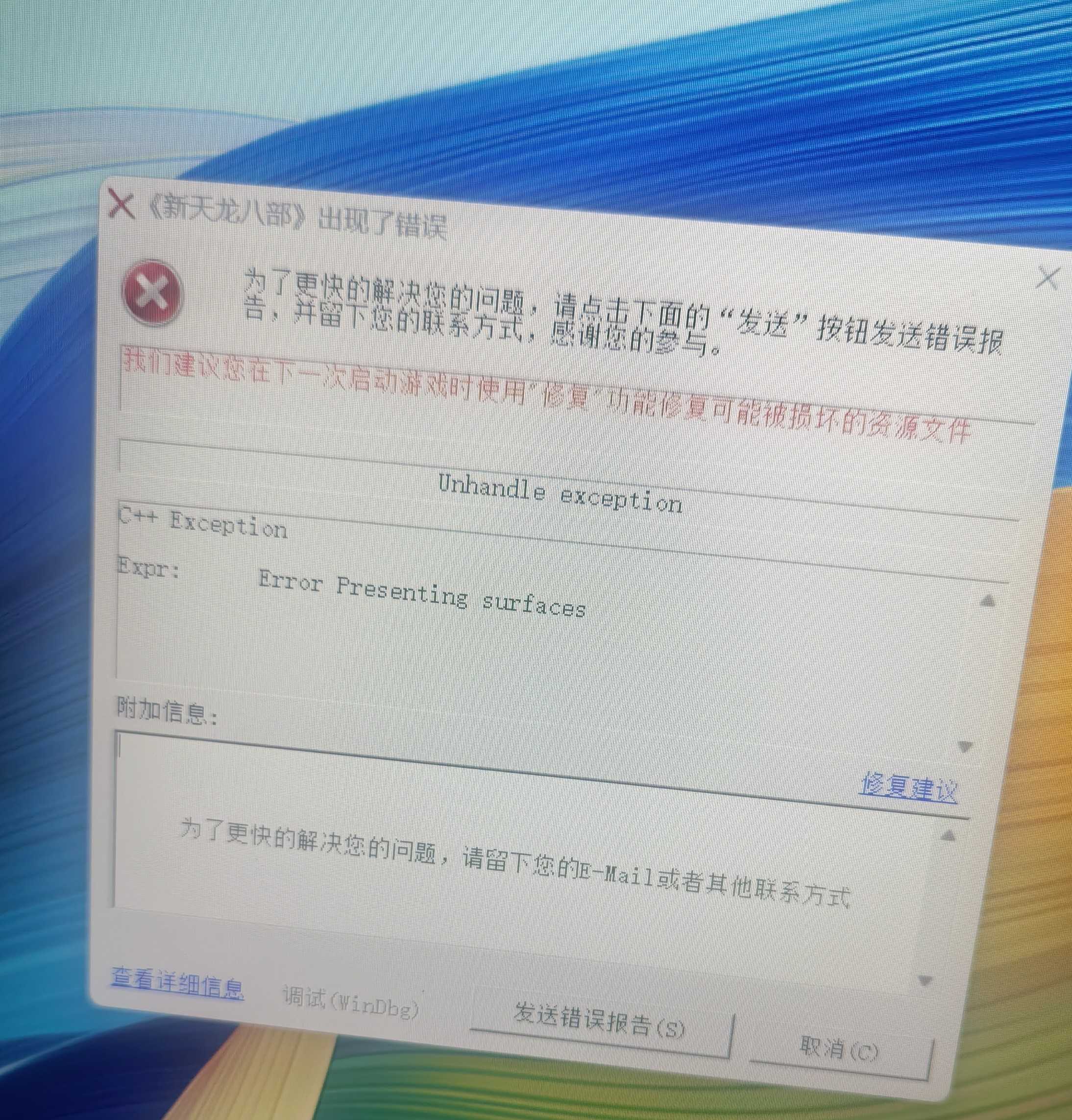 请教各位,游戏开始进入界面就自动弹出这个每次都有修复,可还是进不去到底是什么原因呢