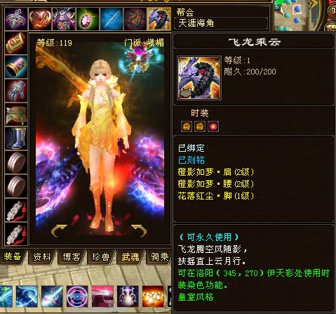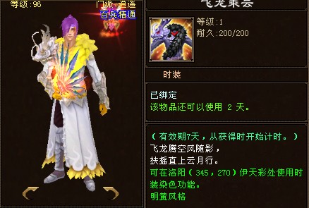 清新优雅的时装:飞龙乘云一上市就俘虏了女玩家的心,当时装:飞龙乘云呈现出鲜艳粉嫩的湖蓝、浅紫、明黄、粉红…染色又将成为天龙八部OL夏季最热的话题。