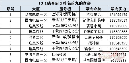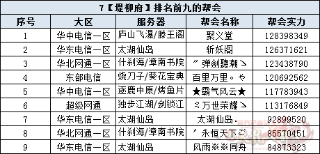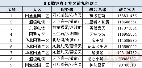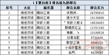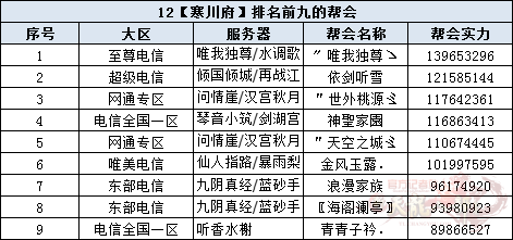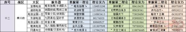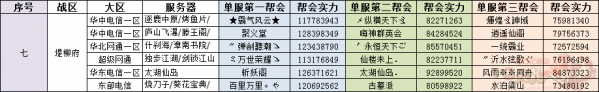 这是各大州府截至12月23凌晨的,各帮派实力整合情况。