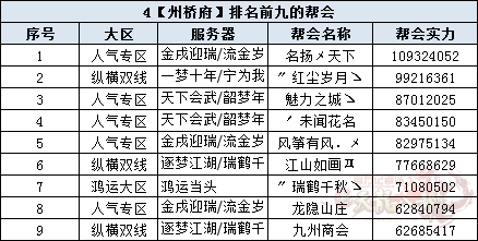 看完各个州府的实力情况,大家是否分析出适合自己要去的帮会呢?还是已经在实力强劲的帮派里呢?
