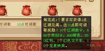 获得一点江湖见闻,江湖见闻可以打开福袋领取奖励