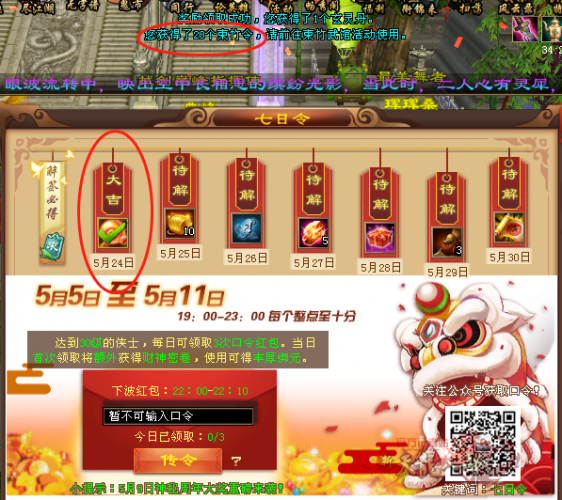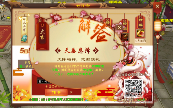 ⭐打开七日令界面就会出现一个解签的窗口 如下图