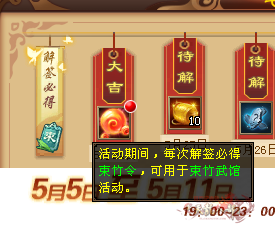 每次解签都可以得到20个束竹令,直接点击就可以了