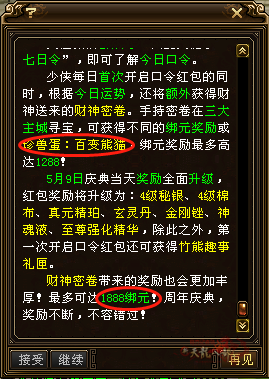 希望大家可以获得财神卷拿到熊猫蛋 毕竟真的很可爱 1888绑定元宝也不错