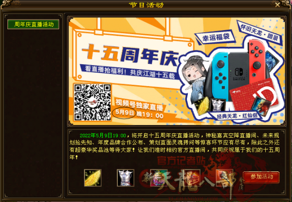 5月9号晚19:00看直播抢福利!共庆江湖十五载