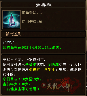 自己岁数大目标小 就需要找降年华了 任务完成状态和梦春秋道具会消失