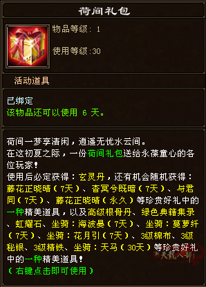 其他的物品分别是(天马30天,小僧笼子,金羽30天,幽兰薰风30天)