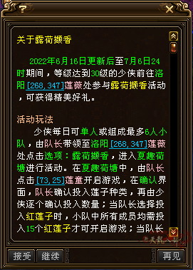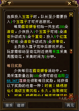 这次的活动都是互相关联的,需要6人组队完成,队长开启任务然后再由每个人去投放莲子才可以,