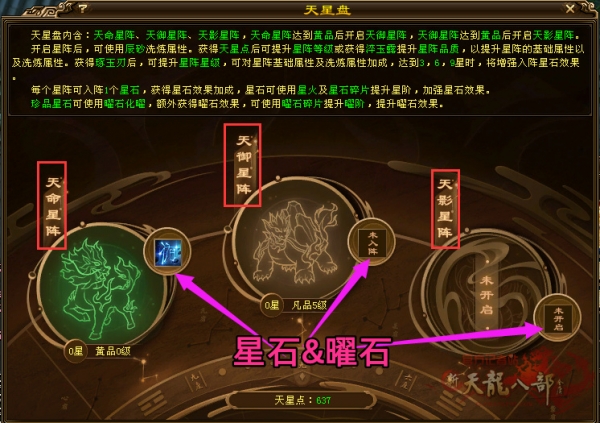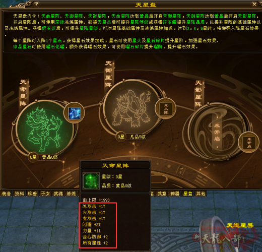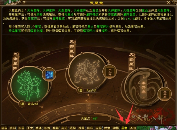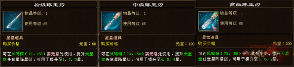 大家在激活天星盘后可以考虑先来提升星阵的星级,氪金大佬可选择在元宝商店购买初级琢玉刃,先提升到3星,然后再慢慢提升星阵等级和品质。