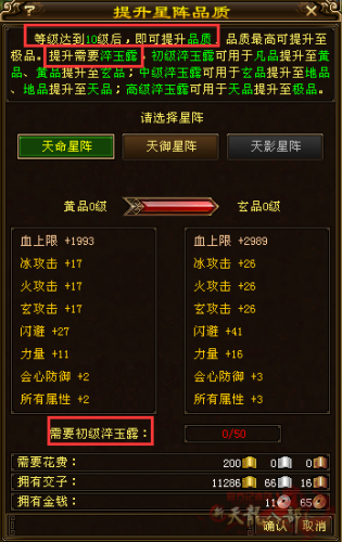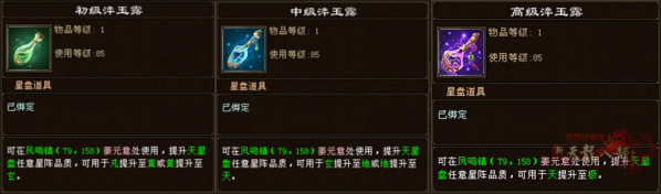 星阵品质提升的道具是:淬玉露。淬玉露可在天荒商行购买。