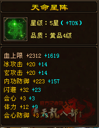 洗炼星阵就是洗出的就是星阵里面的除了基础属性外的七条属性,和洗龙纹一样看运气,不一定每次都是七条属性。