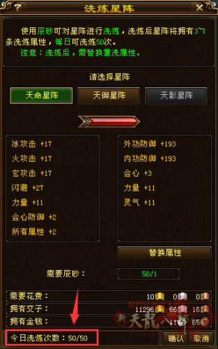 这里需注意,是三个星阵每天 一共只能洗炼50次。