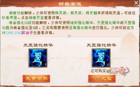 开通自己的御兽并且使用下面的道具就可以获得奖励啦!