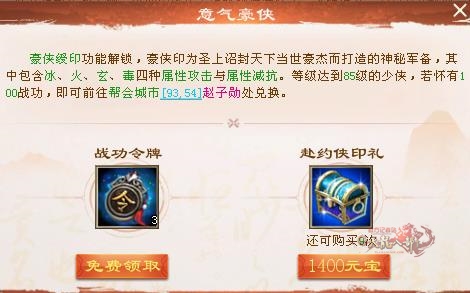 需要打造一下豪侠印,获得豪侠印的前提是进帮!