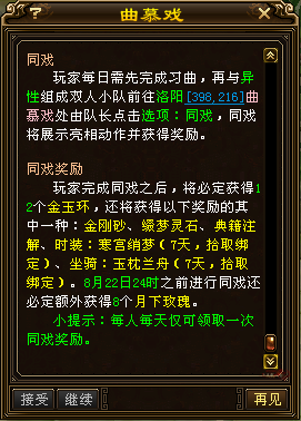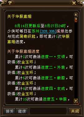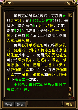 就是做一个小游戏 然后让针传过去就可以完成任务,每次完成都会有金玉环和其他奖励如下!