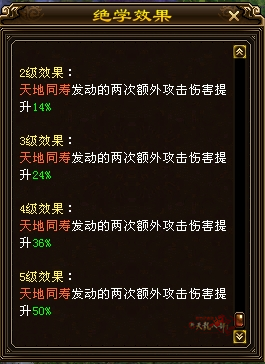 【改动】原天地同寿增加了额外攻击伤害提升百分比初始是百分之六【升级】额外攻击伤害的百分比最高可提升百分之五十