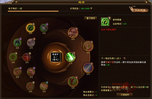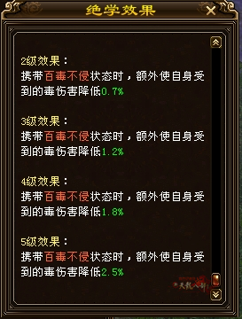 【改动】原百毒不侵新增减毒伤效果初始为百分之0.3【升级】最高受毒伤害可降低到百分之2.5