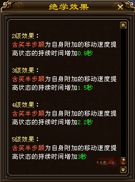 【改动】原含笑半步颠新增为自身附加的移动速度提高状态的持续时间增加0.4秒