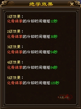 【改动】原化骨绵掌新增技能冷却减cd初始12秒【升级】最高冷却时间缩短120秒