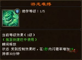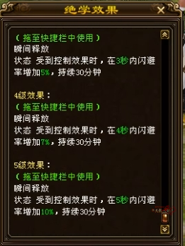 (概括:受到控制自身加闪避) 此技能为状态技能,可拖至技能栏,持续三十分钟