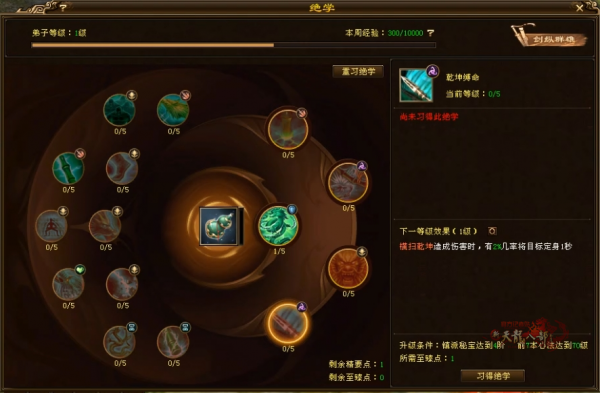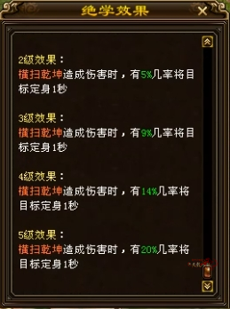 【升级5级】横扫乾坤造成伤害时,有20%几率将目标定身1秒