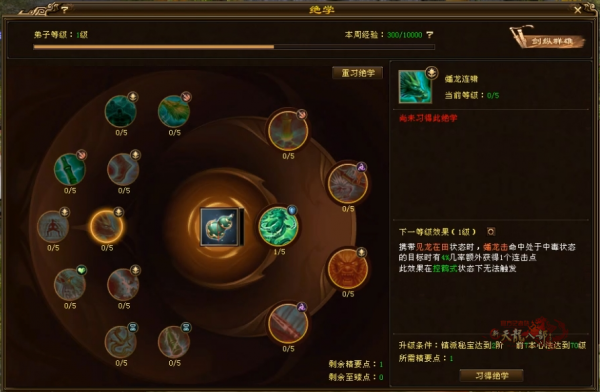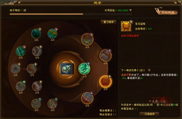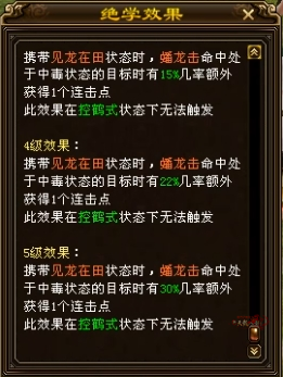【升级5级】携带见龙在田状态时,蟠龙击命中处于中毒状态的目标时有30%几率额外获得1个连击点此效果在控鹤式状态下无法触发