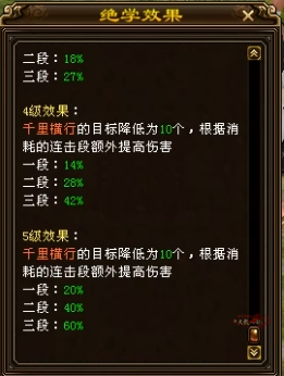 【升级5级】千里横行的目标降低为10个,根据消耗的连击段额外提高伤害