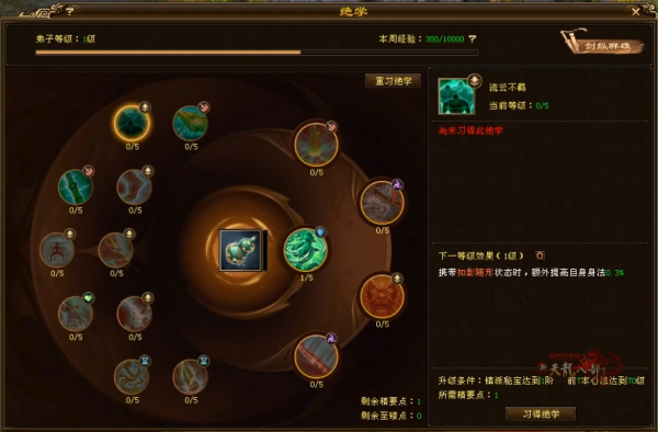【升级5级】携带粘衣十八跌状态时,额外提高自身闪避5%