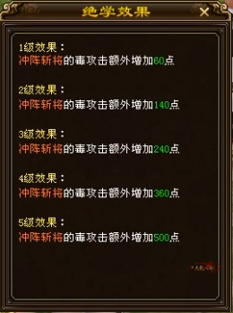 【升级5级】冲阵新将的毒攻击额外增加500点
