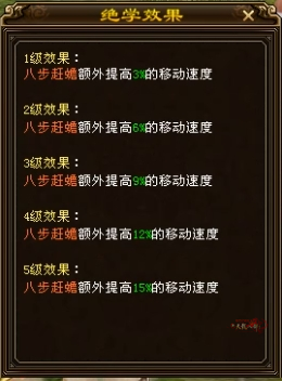 【升级5级】八步赶蟾额外提高15”的移动速度