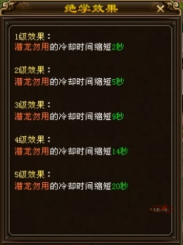 【升级5级】潜龙勿用的冷却时间缩短20秒