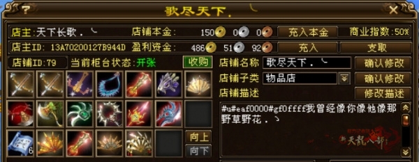 渐渐地,这个江湖的武器变得各种各样,五颜六色,千奇百怪,少侠们,尤其是女少侠们更爱江湖中那一把把传说中的神器武器,更有甚者,那仓库中武器收集满了。