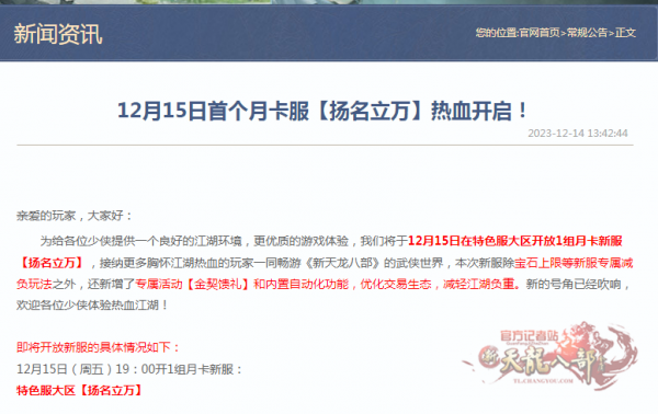 12月15日,在众多玩家的期待中,新的服务器开区——月卡服。