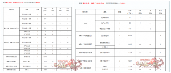 新服累计兑换、消费250000元宝,即可开启钜惠坊—白金坊,