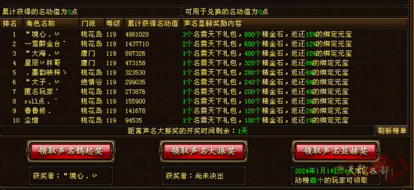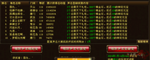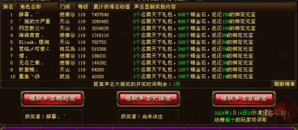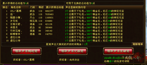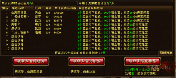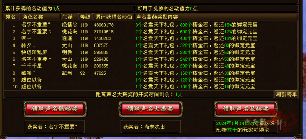 (另【扬名立万】、【登峰造极】、【绝学降世】、【东邪西毒】、【江湖夜雨】、【剑啸九州】服务器将不参与傲世重楼榜活动。)