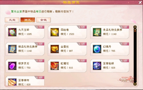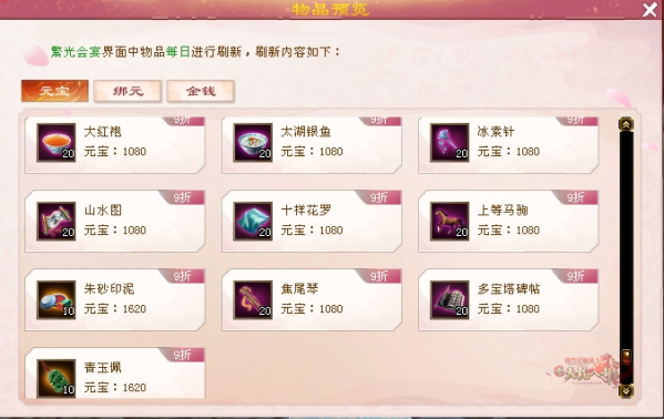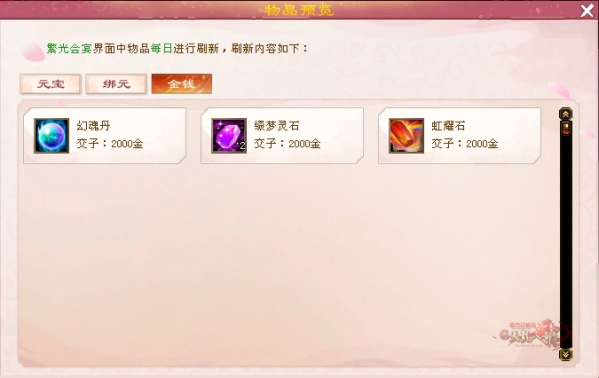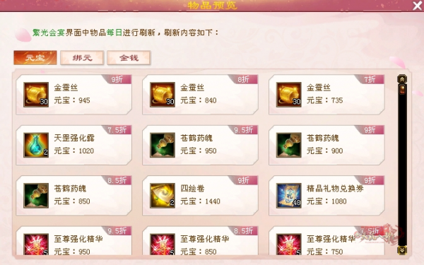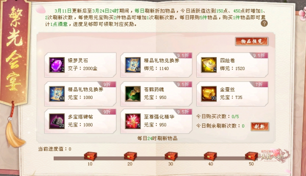 (用元宝每购买两件物品也可以刷一次)每天最多买五个东西噢